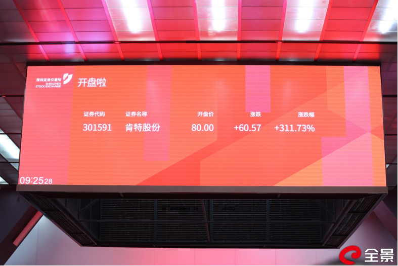 啟赋资本早期投资项目“南京肯特复合材料股份有限公司”(以下简称“肯特股份”)已于今日成功登陆创业板,股票代码301591,发行价19.43元/股,开盘价80.00元,涨幅达311.73%。